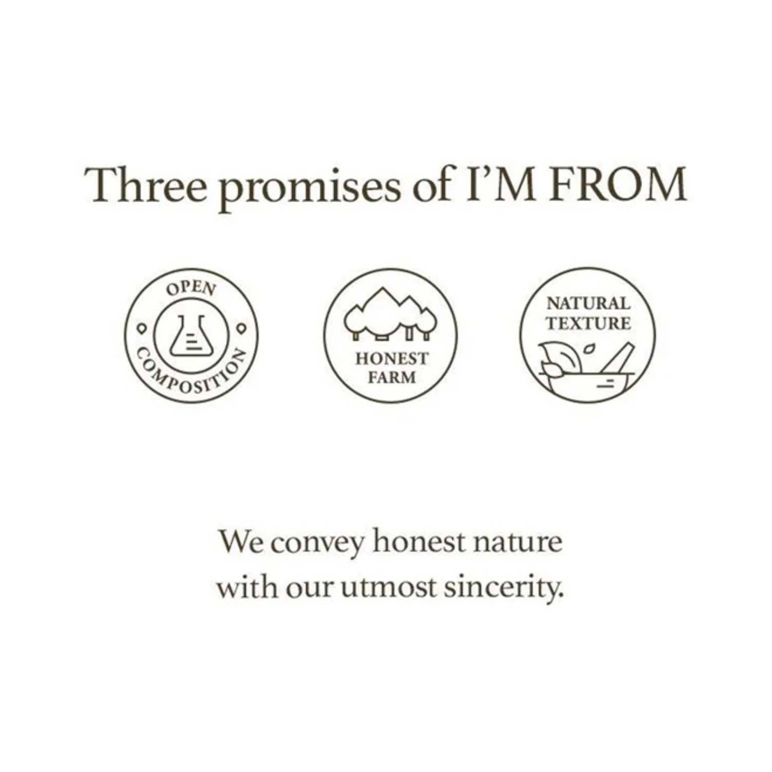 "I'm From" is a Korean-inspired skincare brand known for its commitment to using natural ingredients and focusing on transparency about the origins of its products. The brand emphasizes the use of locally sourced and authentic ingredients, often highlighting the specific regions or farms where their components are grown. Their product range typically features ingredients such as honey, rice, and ginseng, each carefully selected for its purity and efficacy. The brand prides itself on its minimalistic approach to formulation, ensuring that each product delivers maximum benefit with minimal additives.
