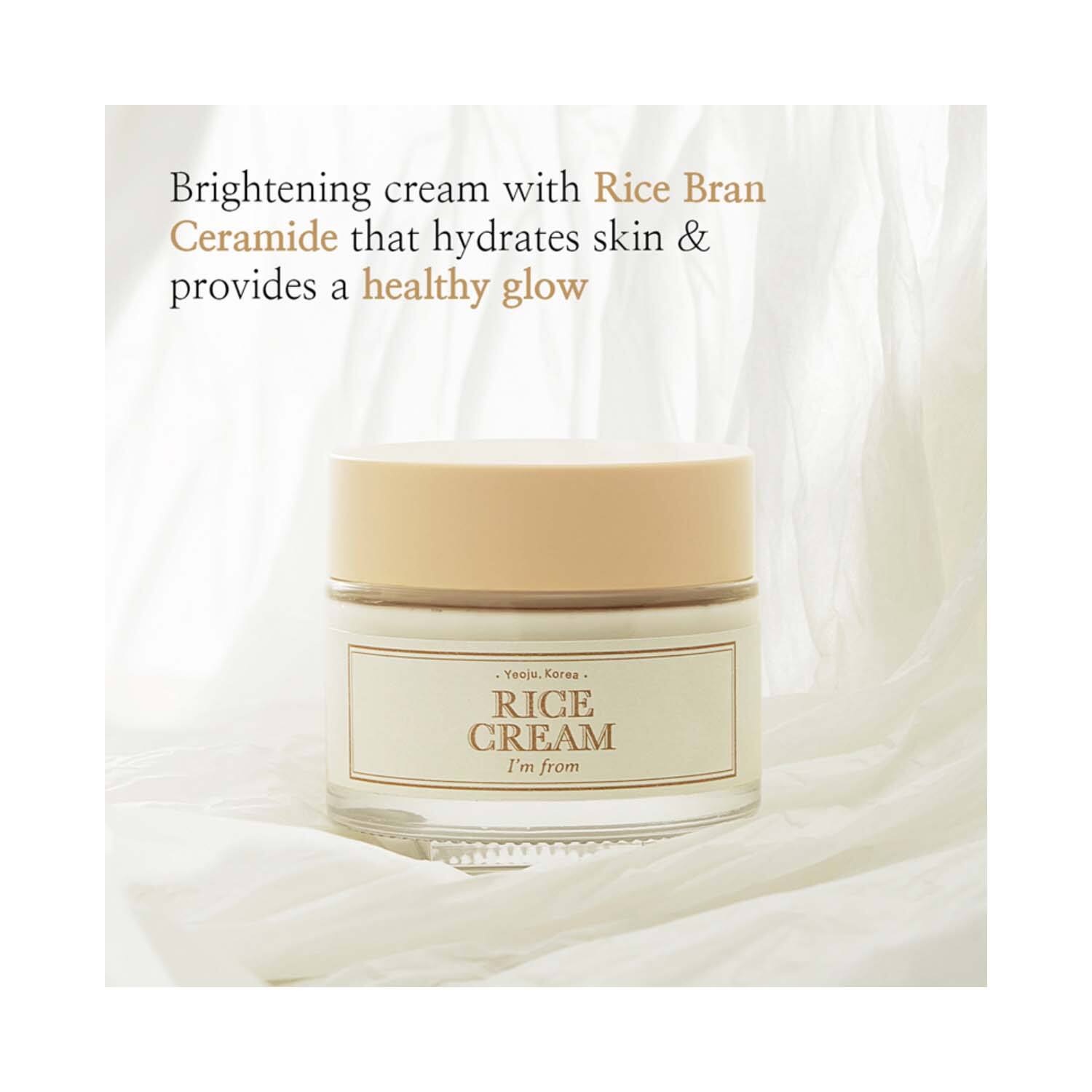 Experience skin rejuvenation like never before with the I'm From Rice Cream (50 g). This rice bran face cream locks moisture in the skin while enhancing elasticity. It is a smoothening cream that improves skin texture. The I'm From face cream is also a nourishing cream that maintains the skin's natural barrier.