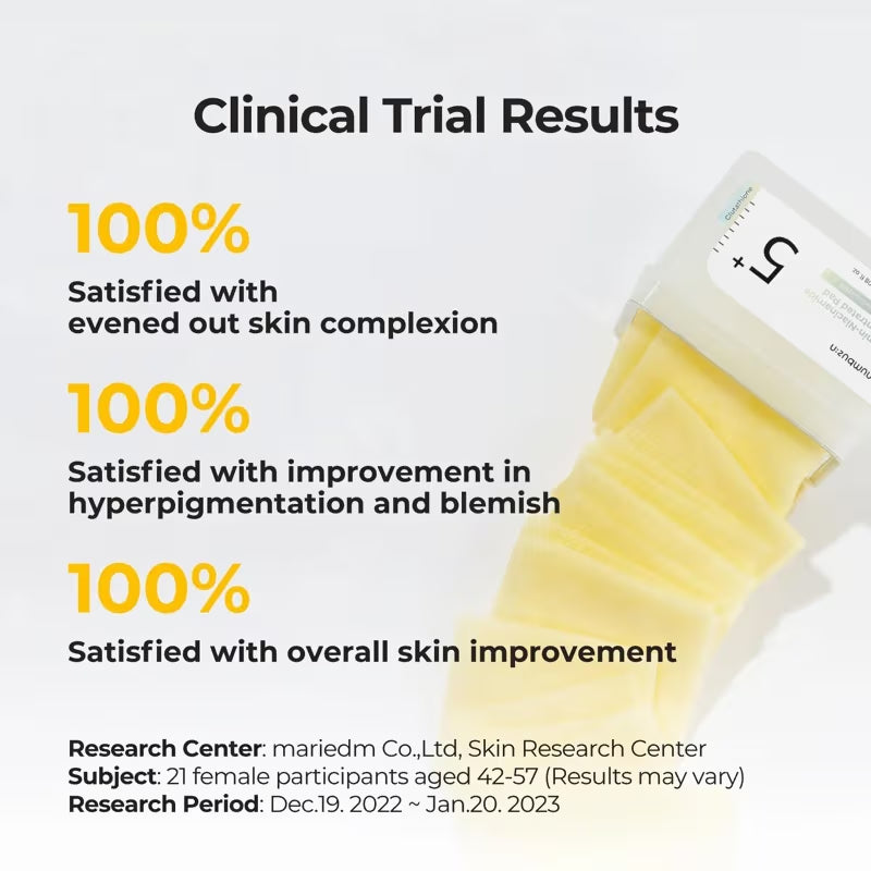 Get a brighter complexion in just 2 weeks with the No.5 Vitamin-Niacinamide Concentrated Pad! Formulated with 5% niacinamide, glutathione, vitamin C and tranexamic acid that target hyperpigmentation, post-breakout marks and sun spots. It also contains PHA and LHA for gentle exfoliation. These are double sided pads for a double effect: The glutathione smooth jelly side for brightening skin complexion and the cotton gauze side for gently resurfacing skin texture.