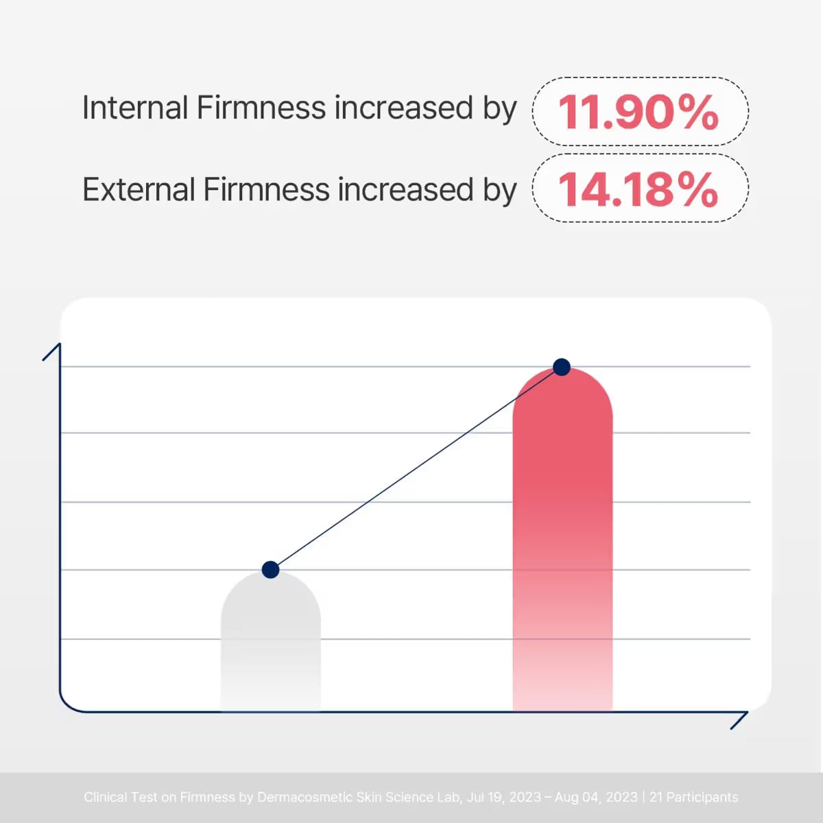 - Skin elasticity improvement of 14.18% after 2 weeks of use